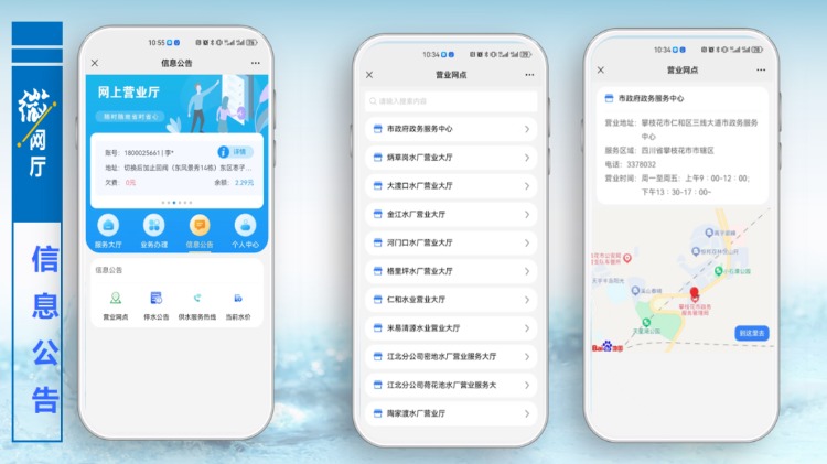 信息公告模塊對(duì)公司營(yíng)業(yè)網(wǎng)點(diǎn),停水通知,服務(wù)熱線(xiàn)等信息進(jìn)行公開(kāi)發(fā)布,后期我們將持續(xù)進(jìn)行更新。